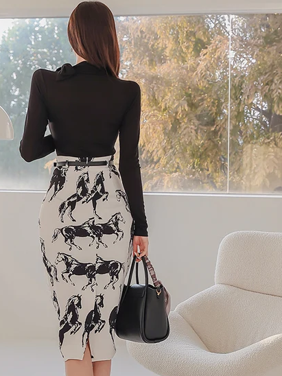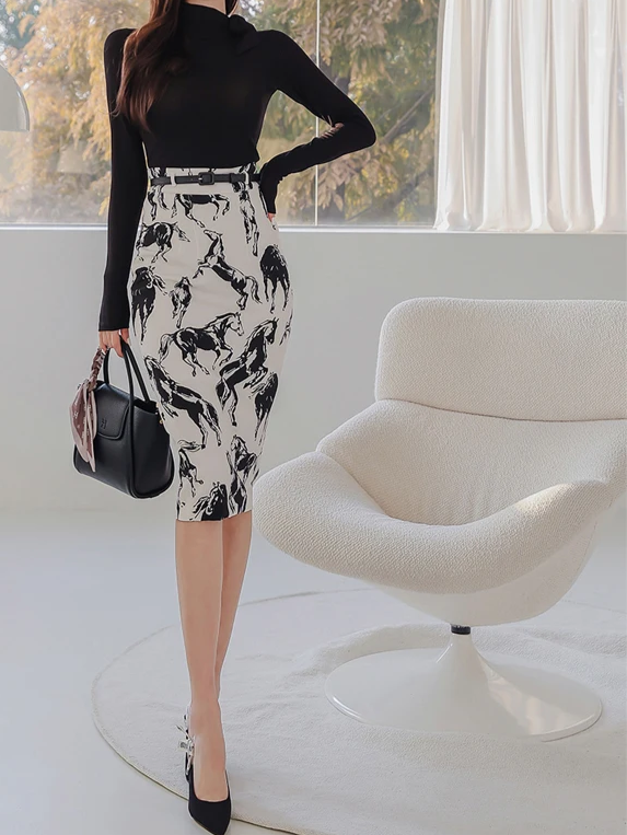 Sharp Look Contrast Zipper Top With High Waist Pencil Skirt Set - Ships in 24 Hrs