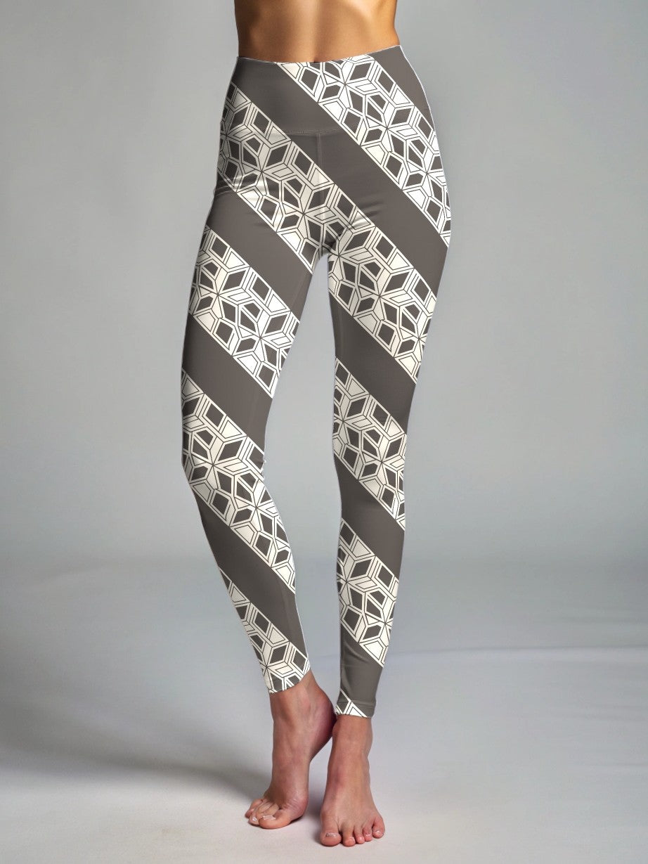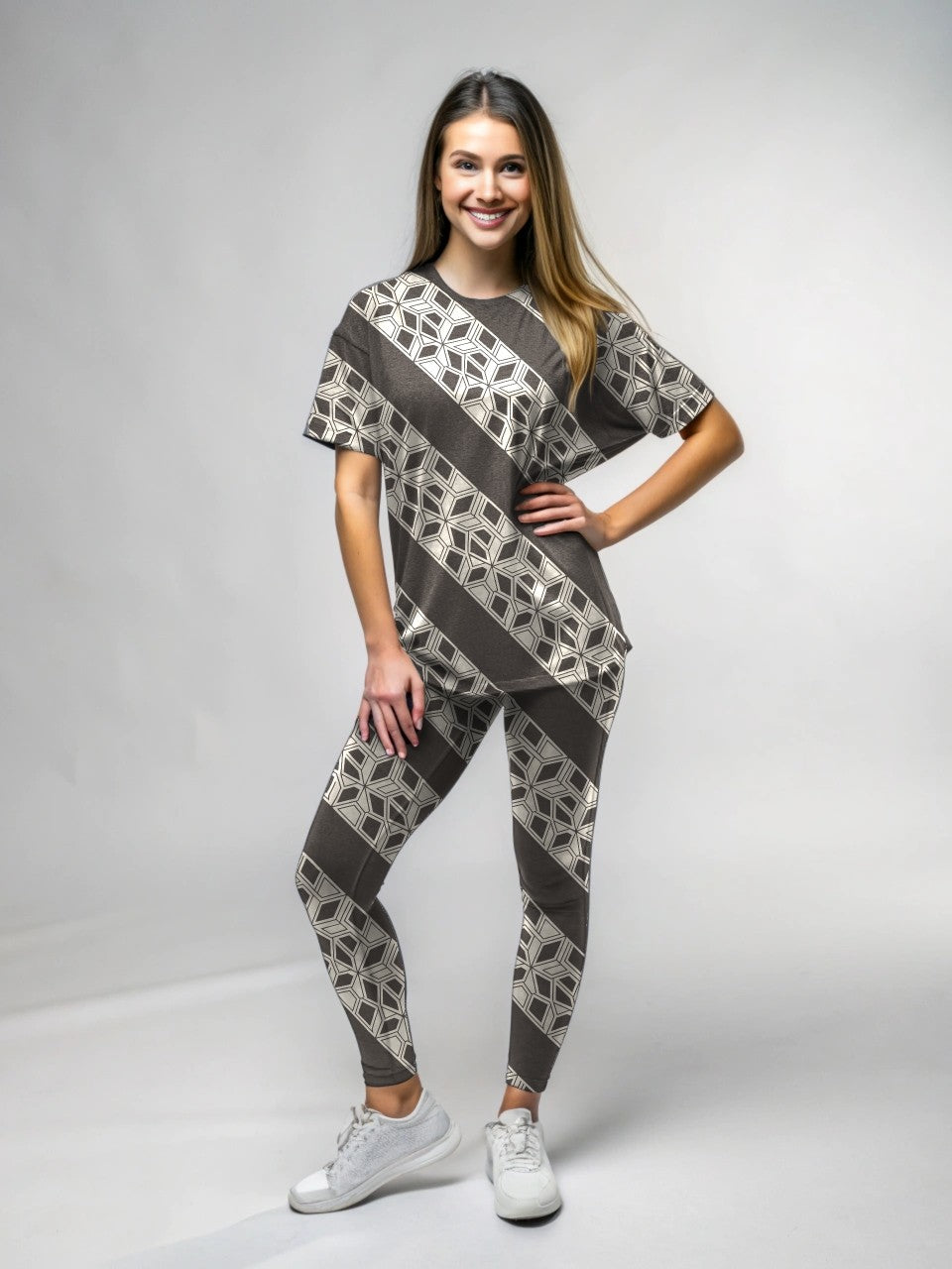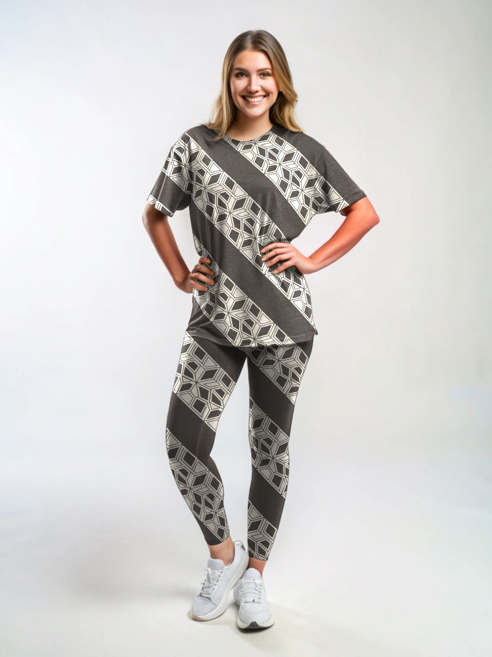 Classy Diagonal Print Premium Oversized Tee With Tummy Tuck Body Shaping Leggings Co-ord Set