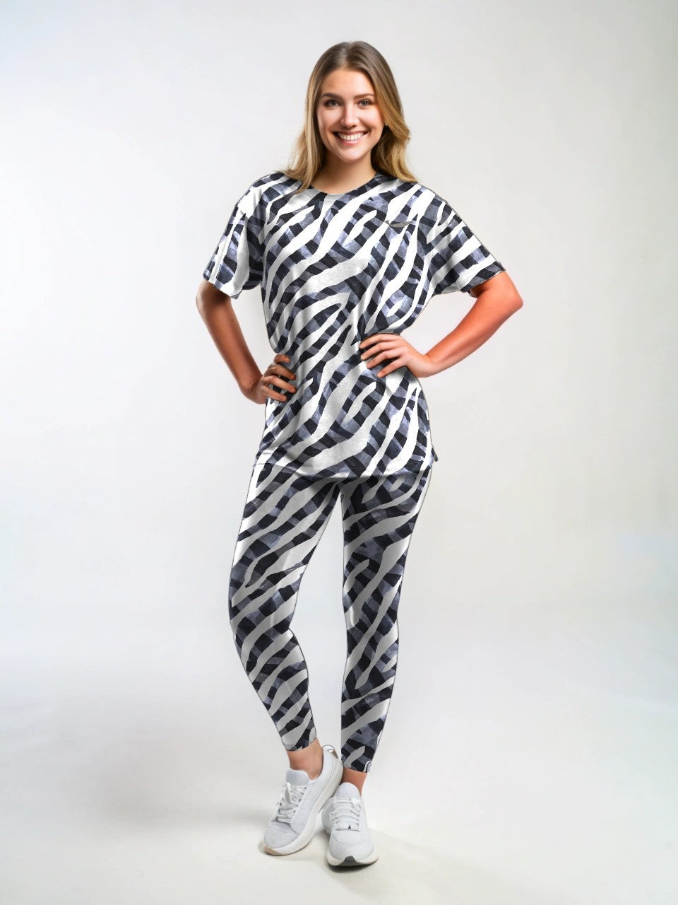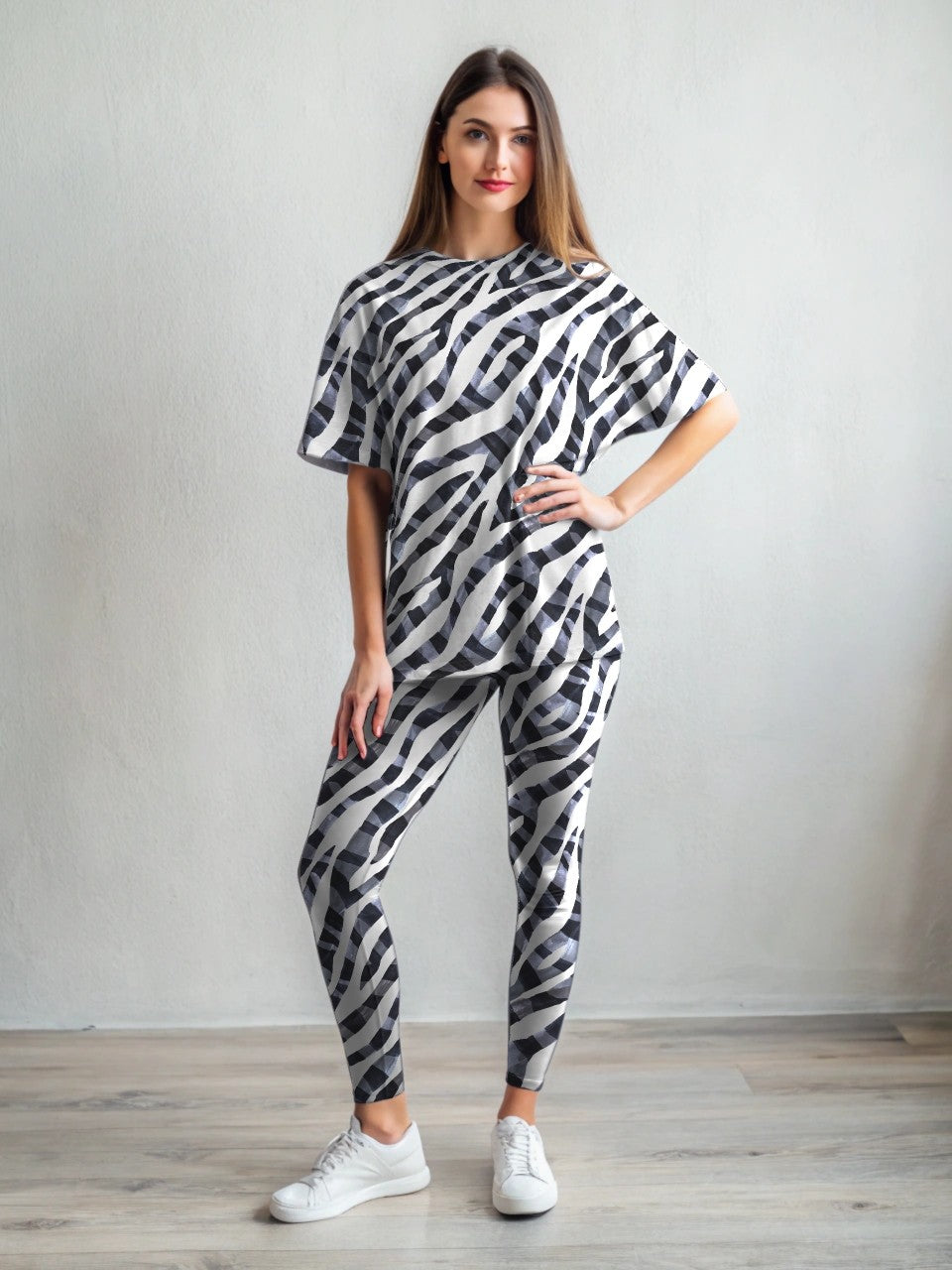 Classy South African Zebra Print Premium Oversized Tee With Tummy Tuck Body Shaping Leggings Co-ord Set