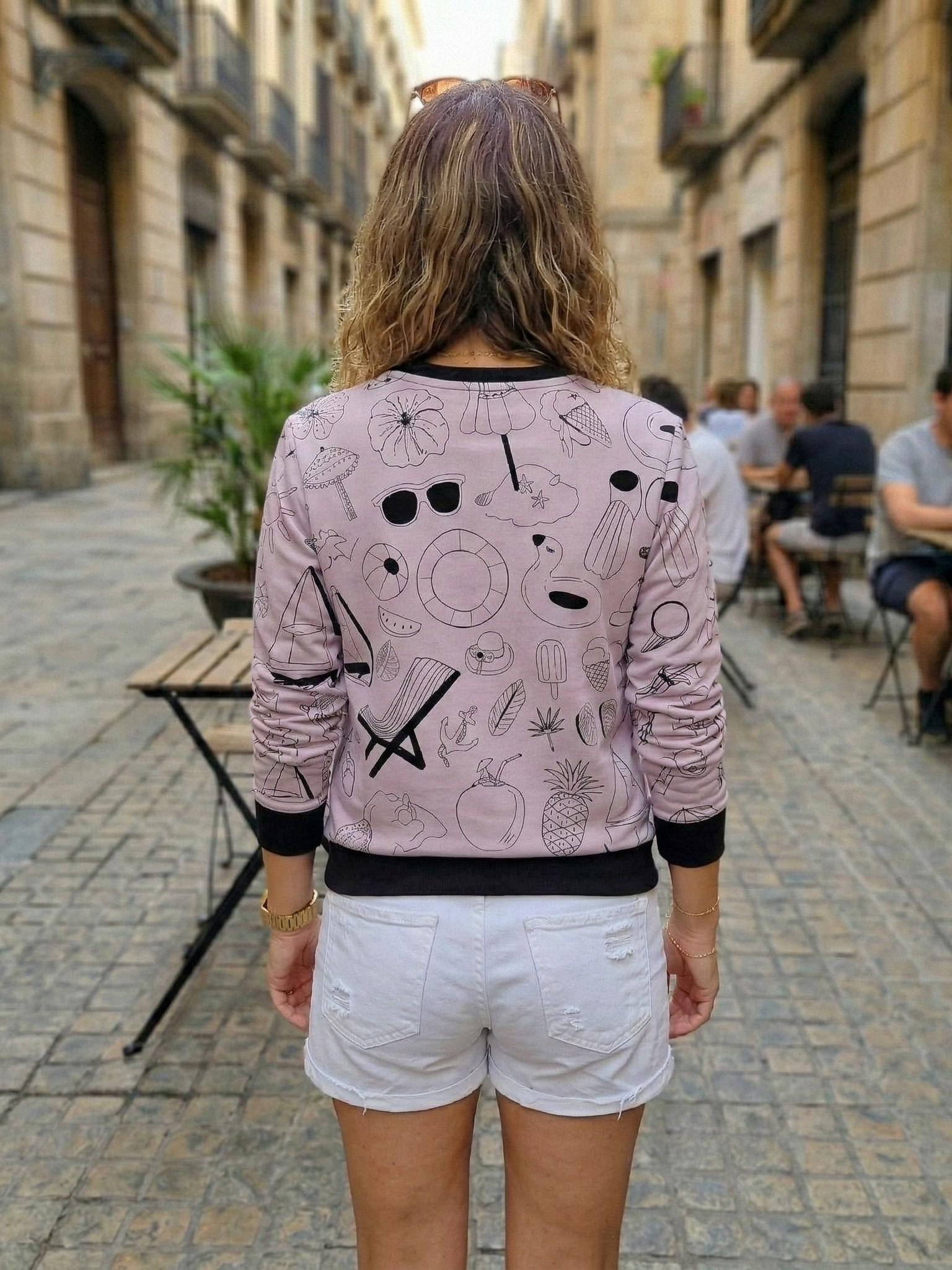 Cute Doodle Art Print Pink Sweatshirt