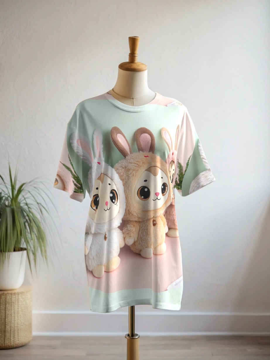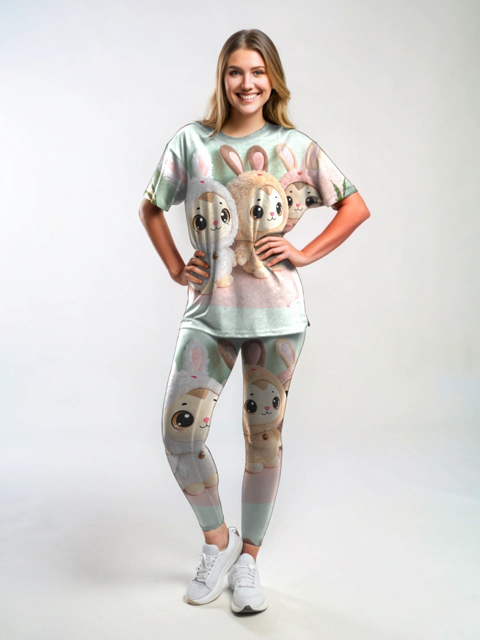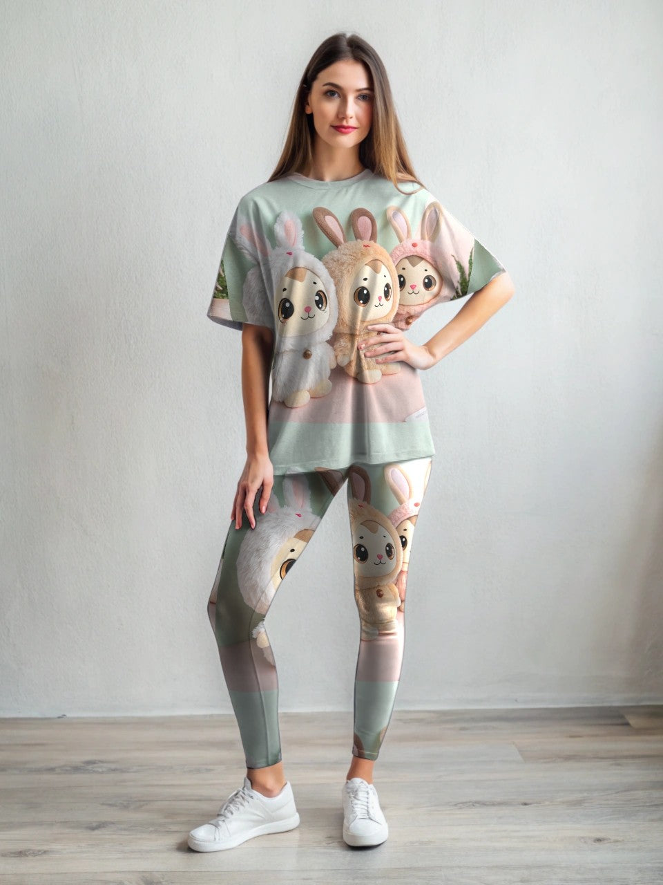 Cute Labubu Doll Inspired Print Premium Oversized Tee With Tummy Tuck Body Shaping Leggings Co-ord Set