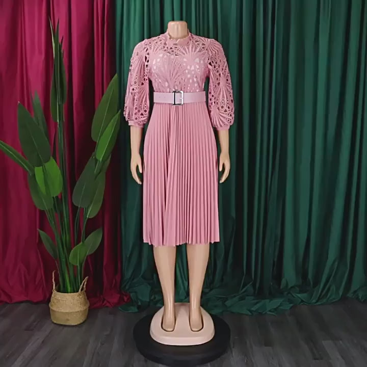 Elegant Geometric Pattern Lace High Rise Long Sleeve White Dress - Ships in 24 Hrs