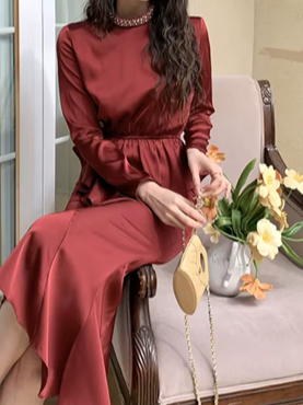 New Arrival Satin Beam Long Black Dress - Ships in 24 Hrs