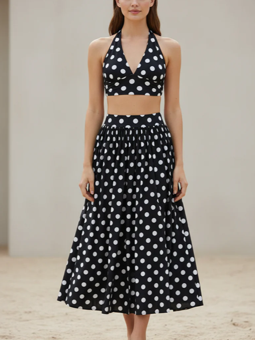 Chic Halter Polka Dot Summer Style Skirt Set