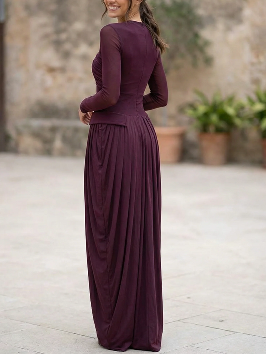 Premium Fashion Draped Pleated Long Sleeve Maxi Dress
