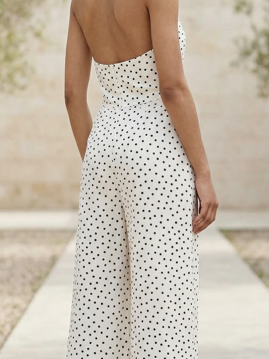 Smart Polka Dot Halter Wide Leg White Jumpsuit