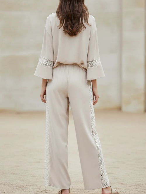 Leisure Wear Lace Trim Shirt And Pants Set