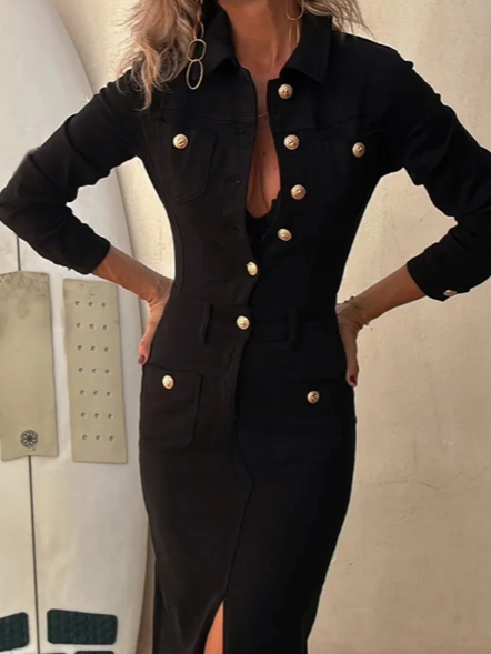Beautiful Black Denim Full Sleeve With Pockets Dress