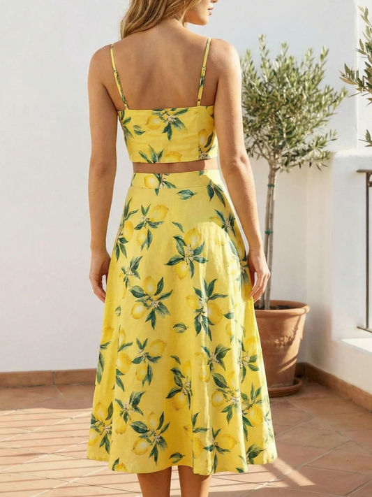 New Arrivals Printed Crop Top With Skirt Co Ord Set