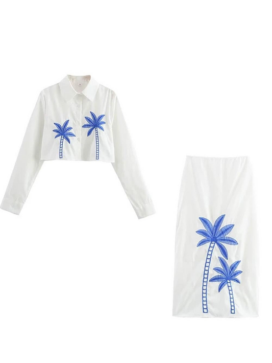 Stylish Crop Shirt With White Skirt Co Ord Set