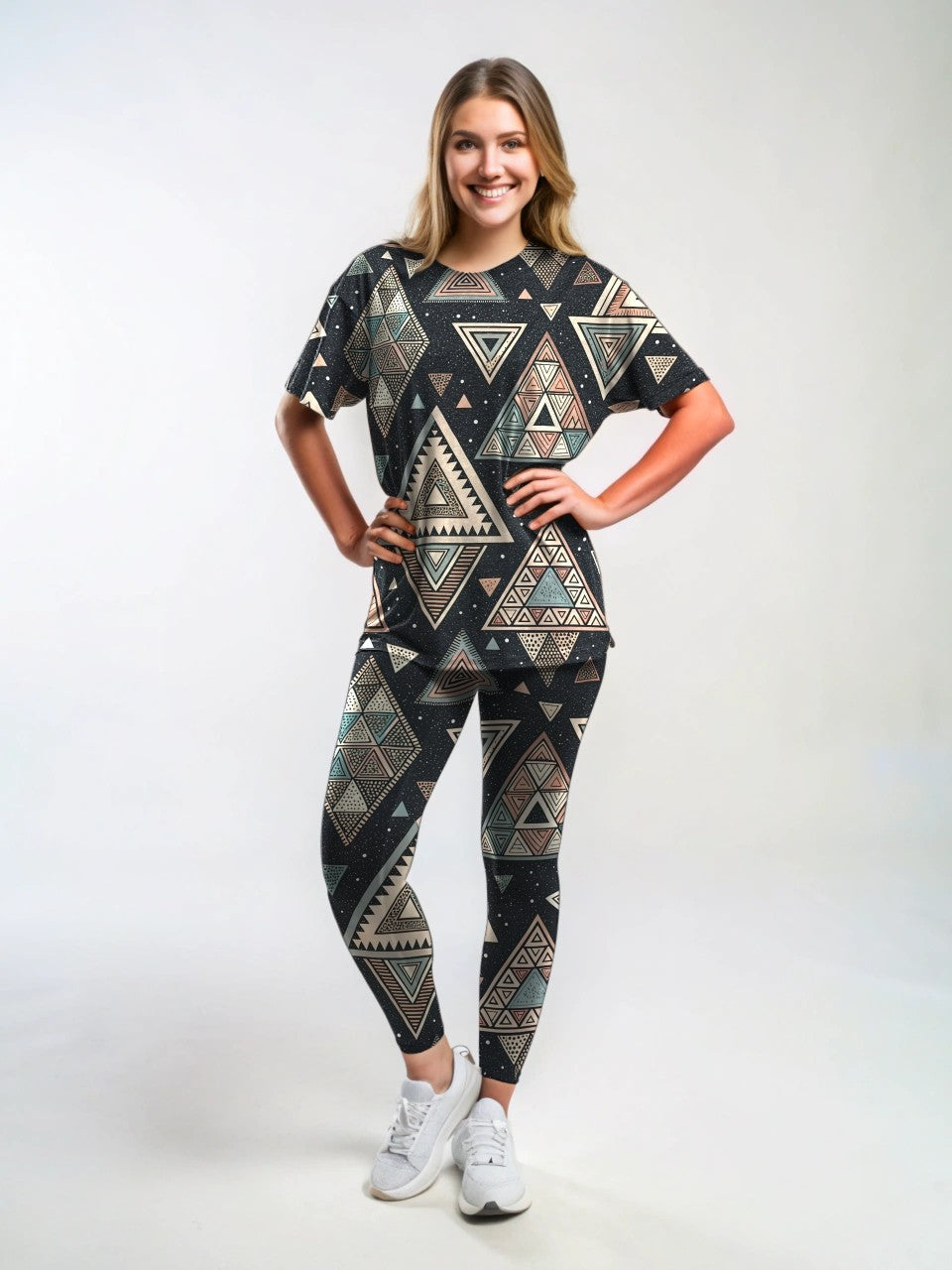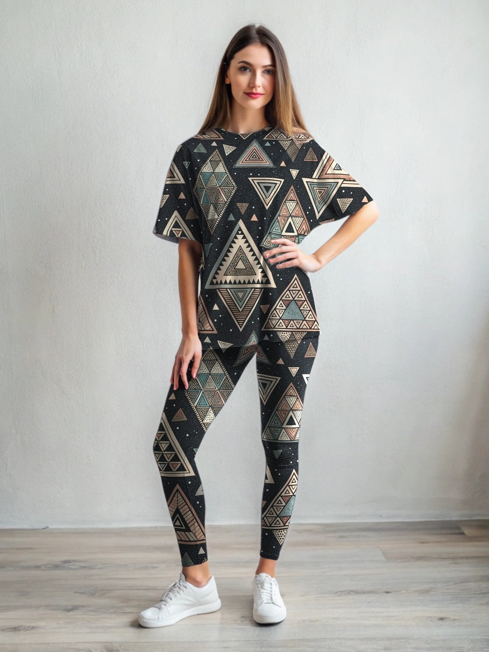 Fashionable Egyptian Emerald Green Print Premium Oversized Tee With Tummy Tuck Body Shaping Leggings Co-ord Set