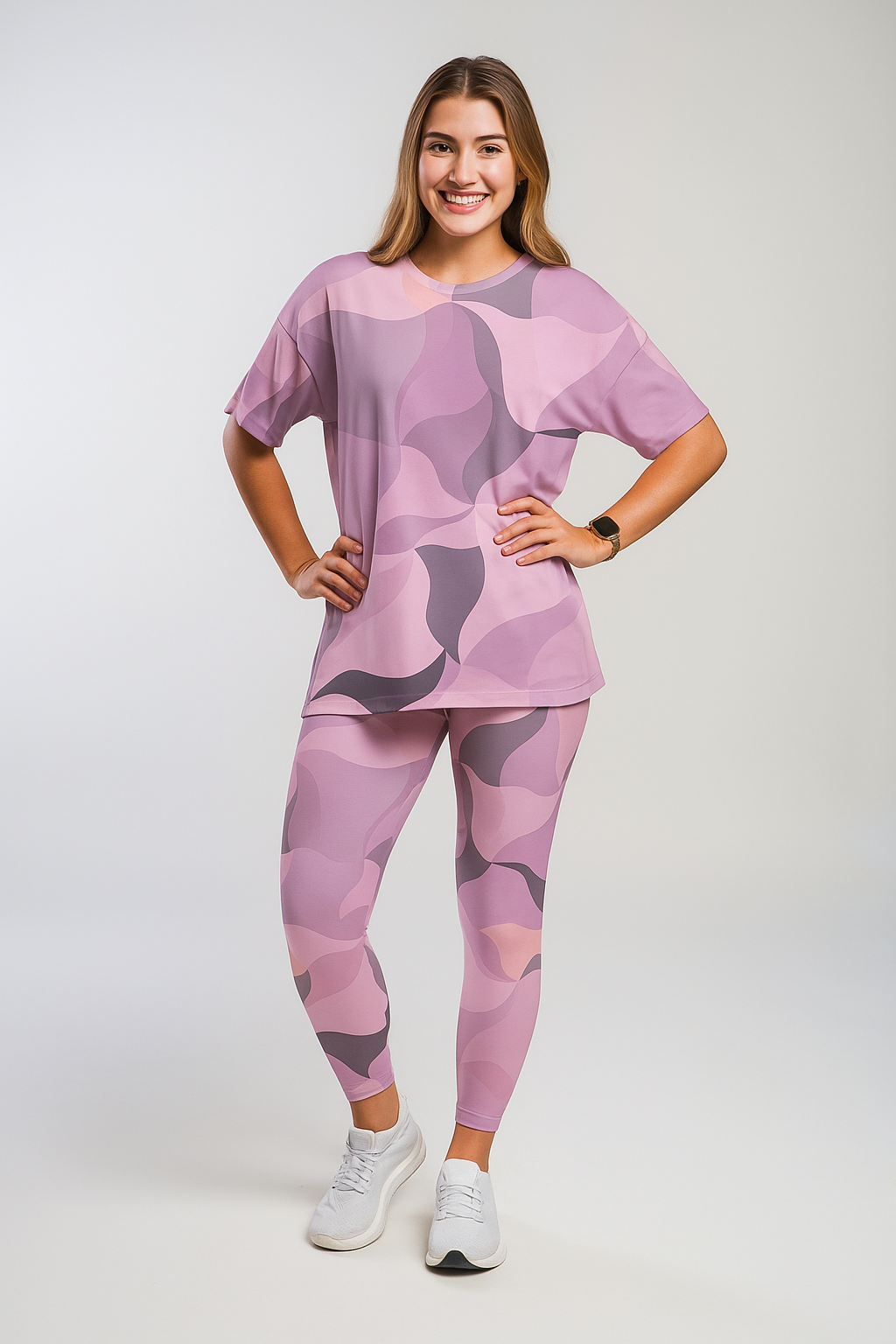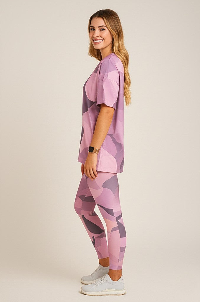 Fashionable Pink Camouflague Print Premium Oversized Tee With Tummy Tuck Body Shaping Leggings Co-ord Set (Copy)