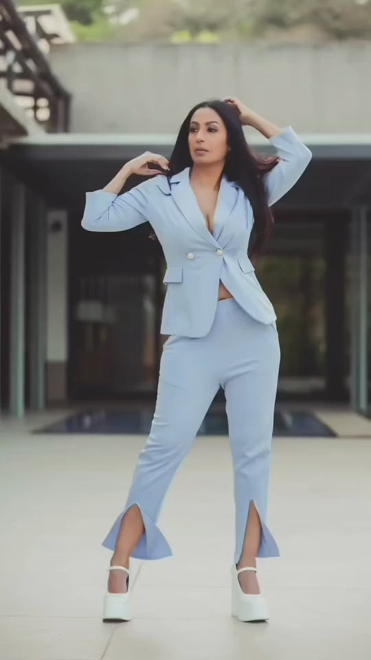 Formal Style Blazer Coat And Pants Light Blue Suit Set