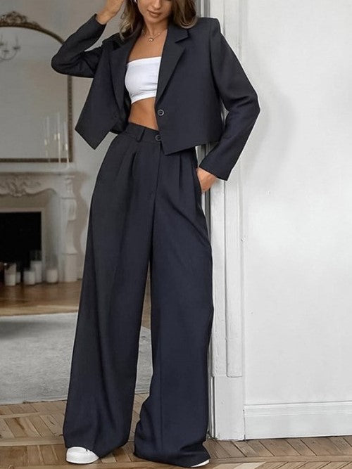 Formal Style Solid Long Sleeve Blazer Pants Set