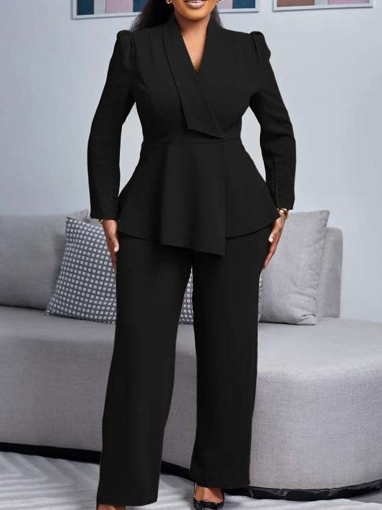 Formal Wear Asymmetrical Hem Tailored Collar Wide Leg Pants Black Set
