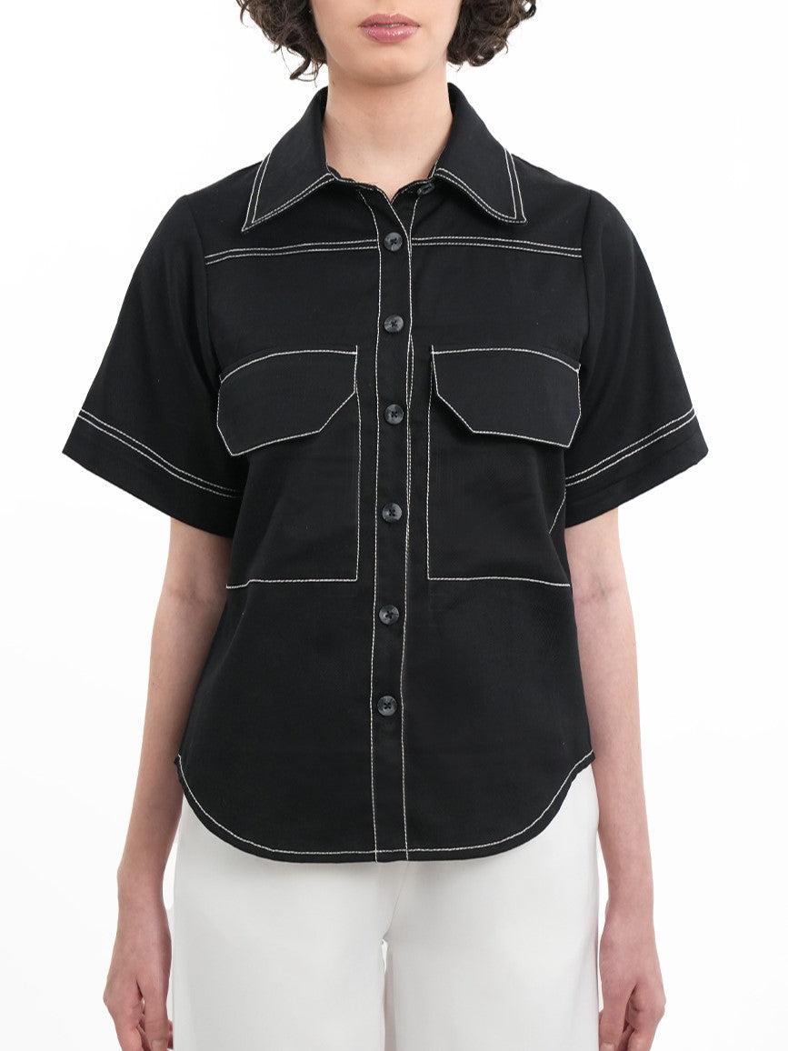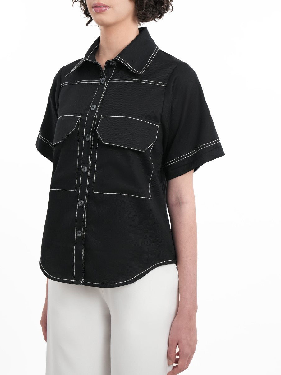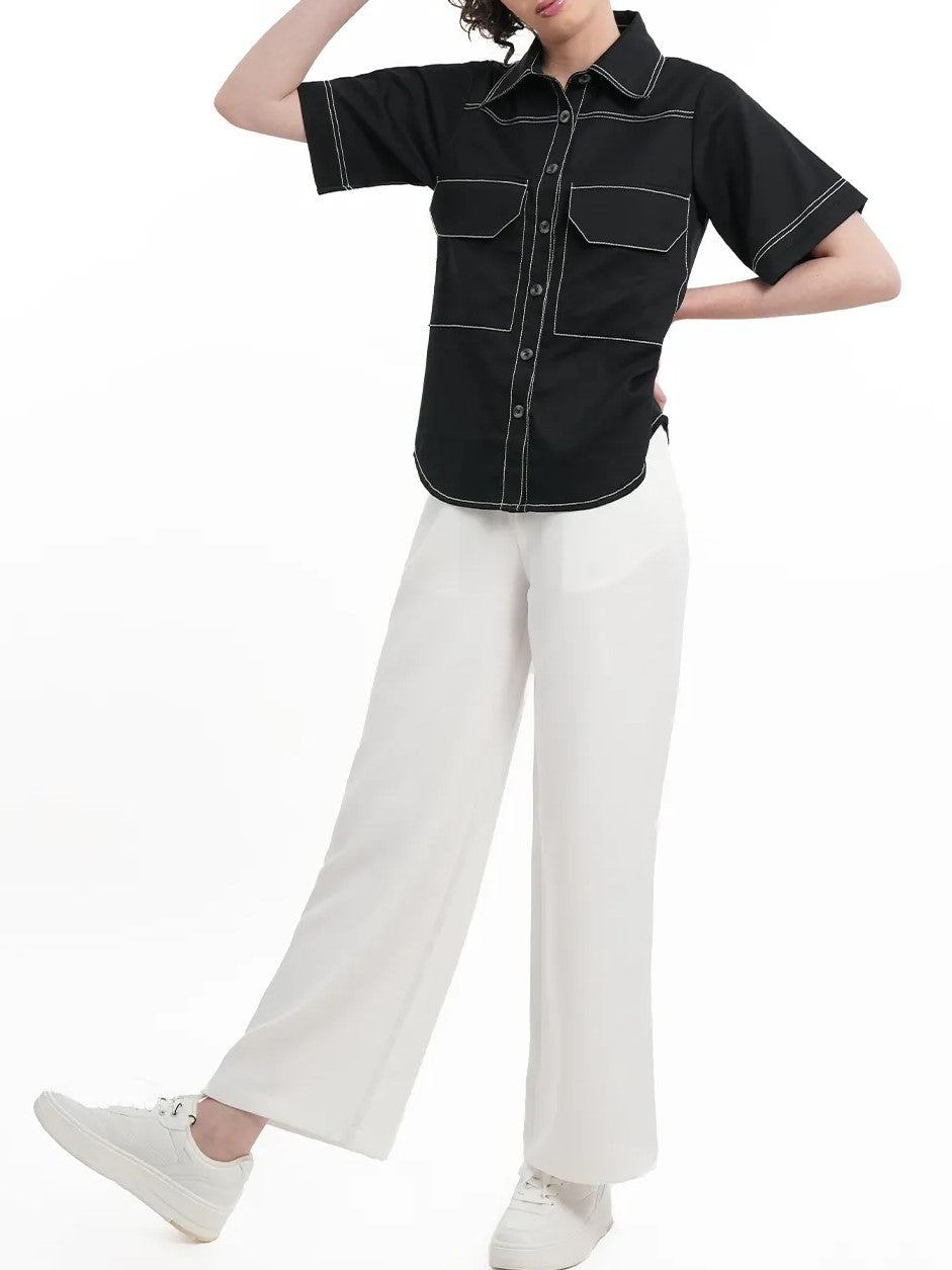 Formal Wear White And Black Detailed Stitch Co Ord Set