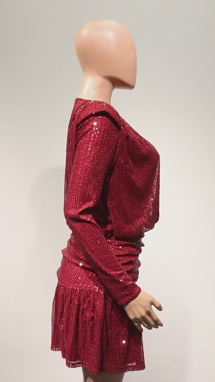 Gorgeous Sequin Irregular Ruffle Burgundy Mini Dress