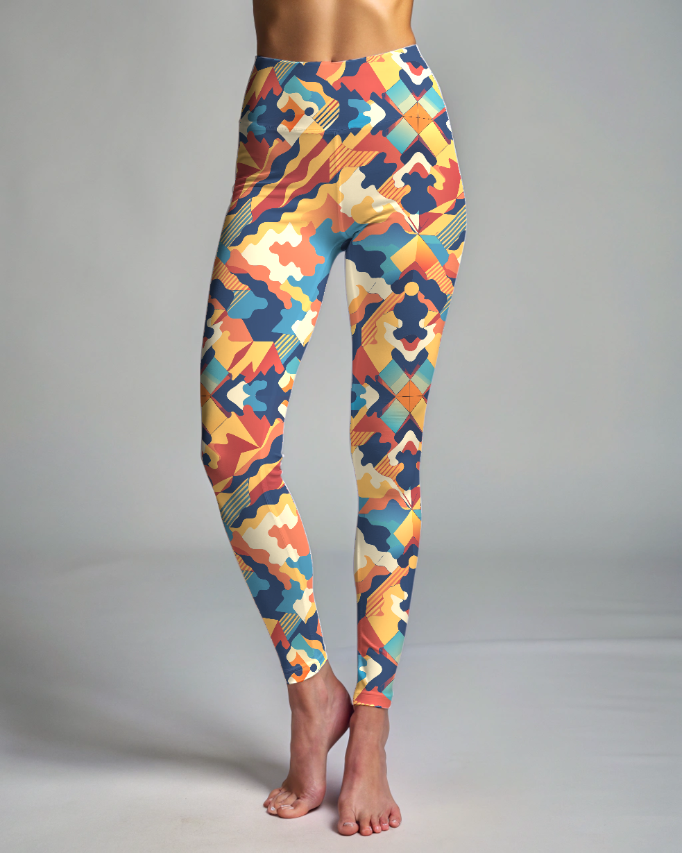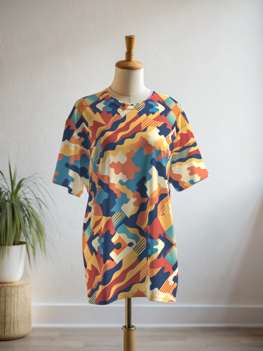Must Have! Bright Abstract Print Oversized Tee With Tummy Tuck Body Shaping Leggings Co-ord Set