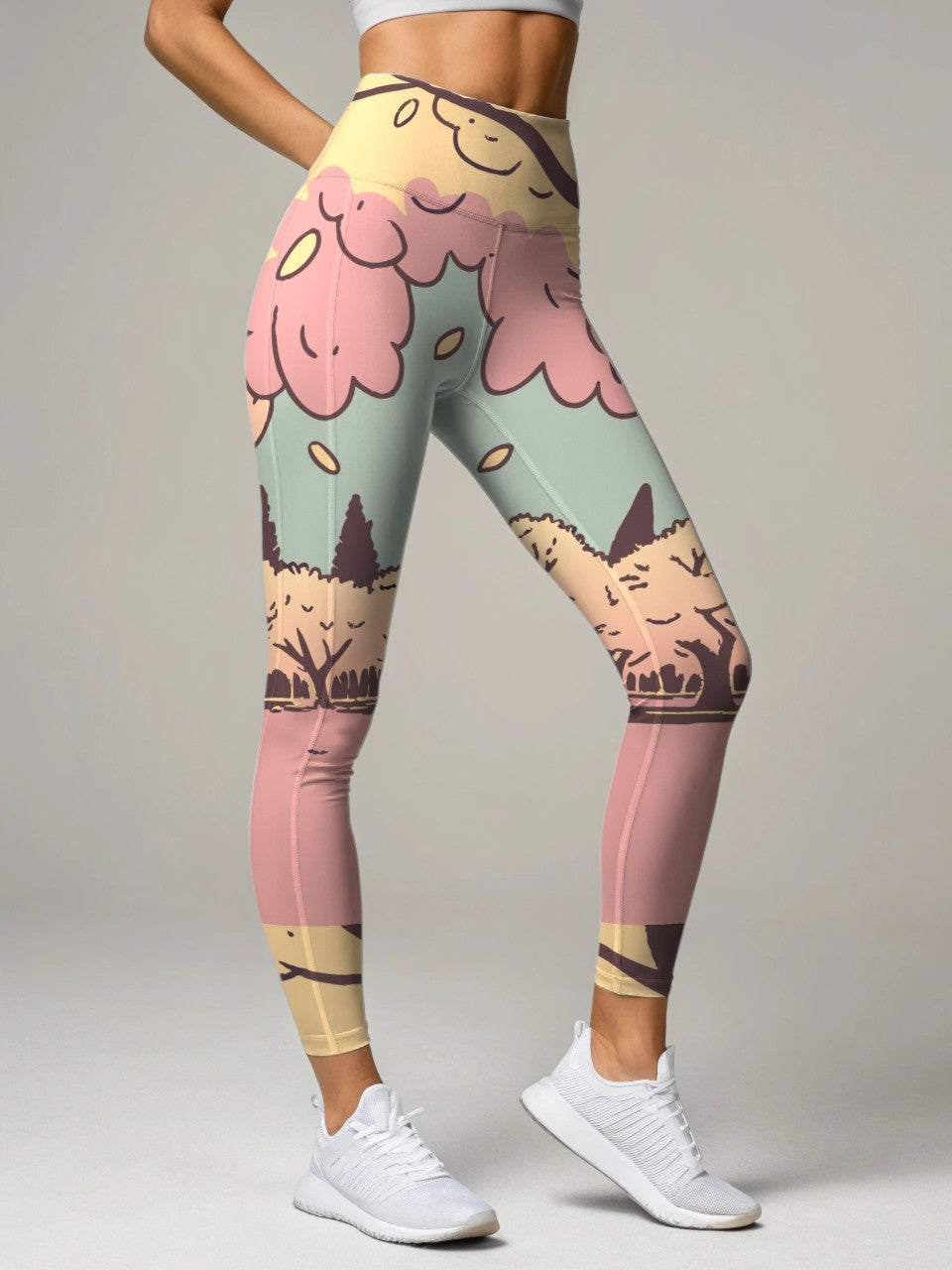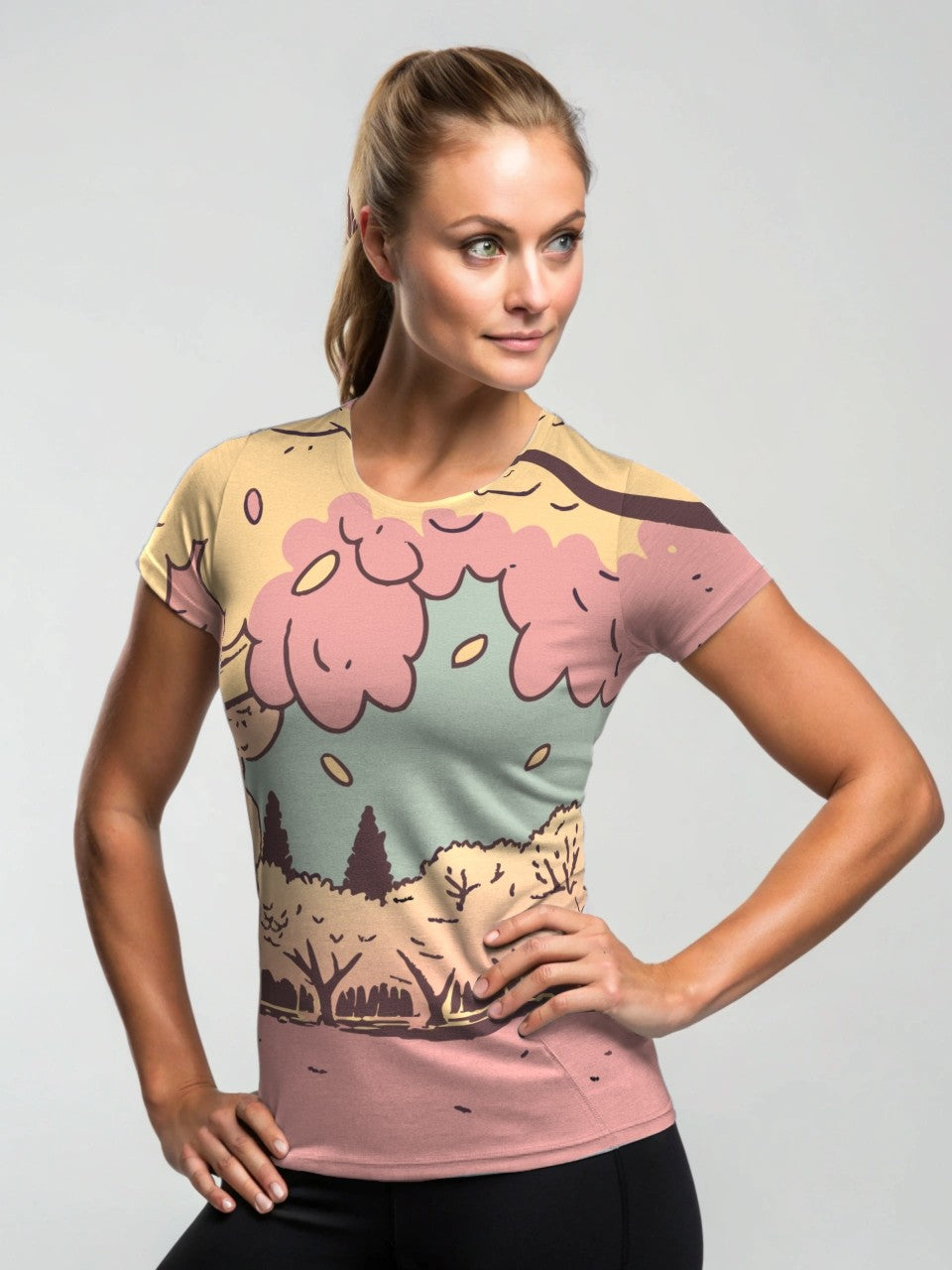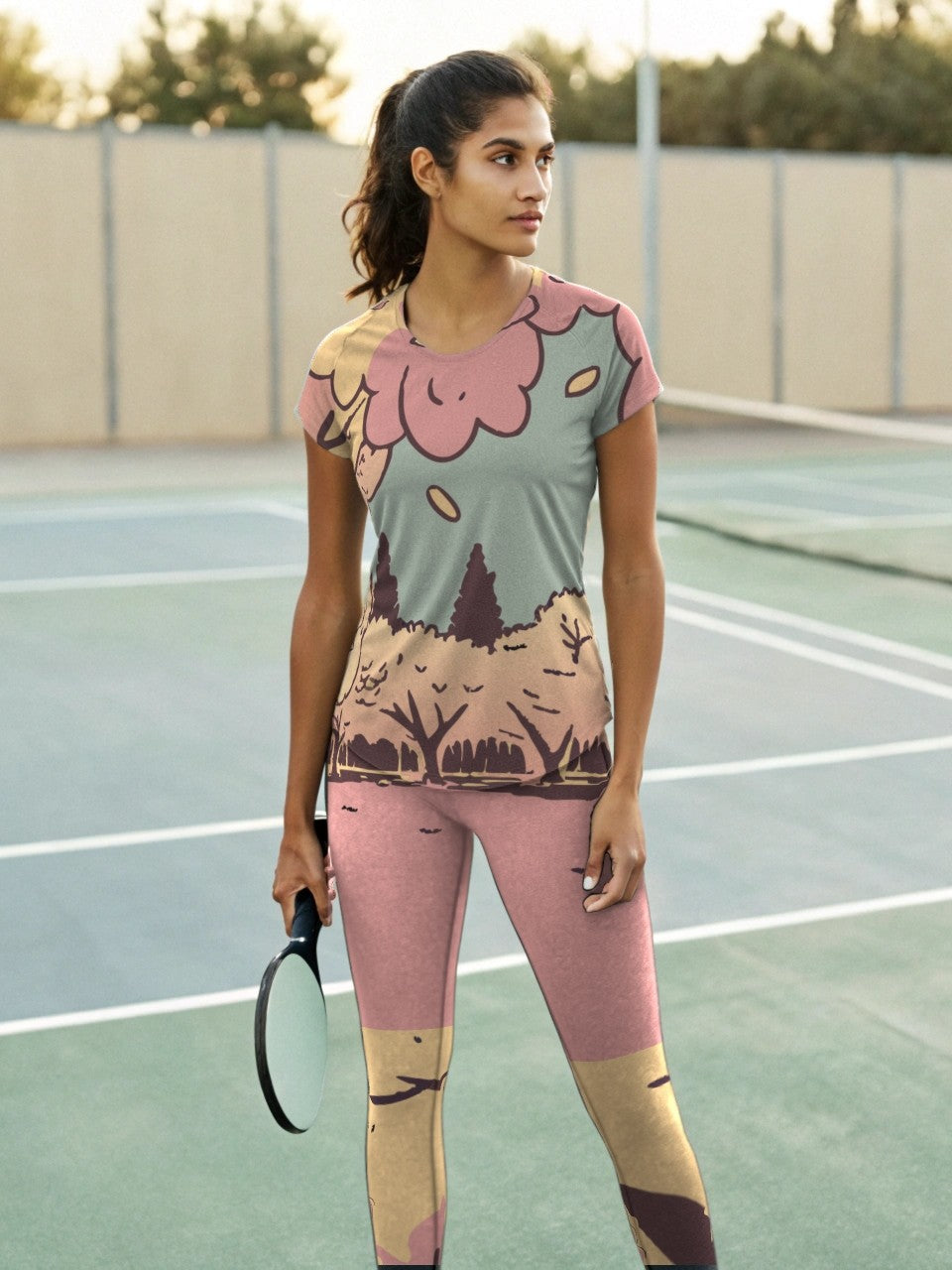 Pickleball | Paddleball | Activewear Coord Set Tshirt With Tummy Tuck Leggings | Pink Cherry Blossom Print