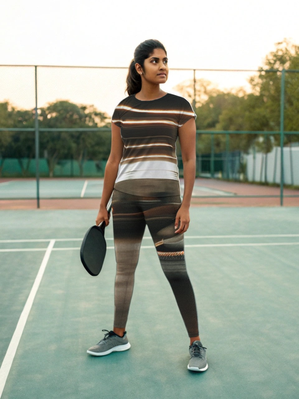 Pickleball | Paddleball | Activewear Coord Set Tshirt With Tummy Tuck Leggings | Trailing Light Print