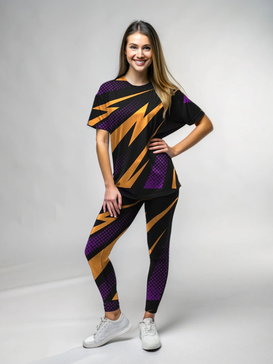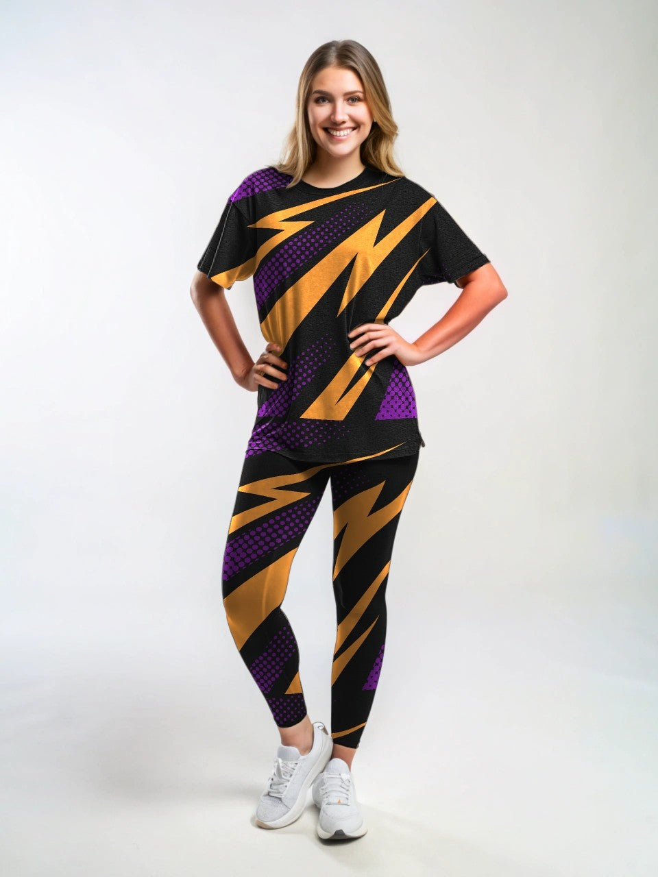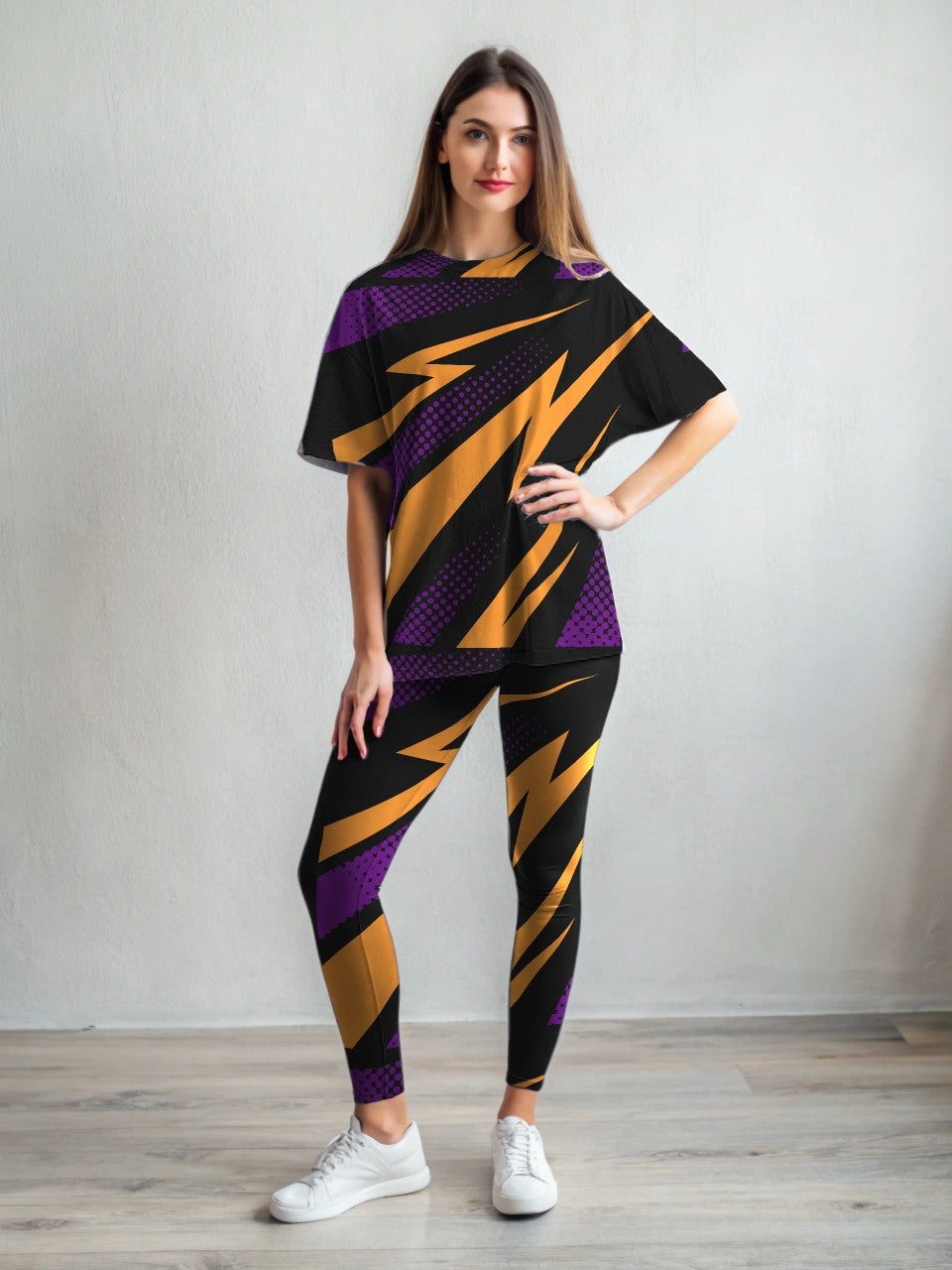 Powerdrift Lighting Print Premium Oversized Tee With Tummy Tuck Body Shaping Leggings Co-ord Set