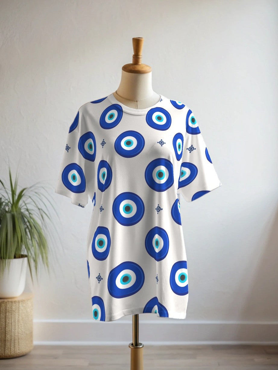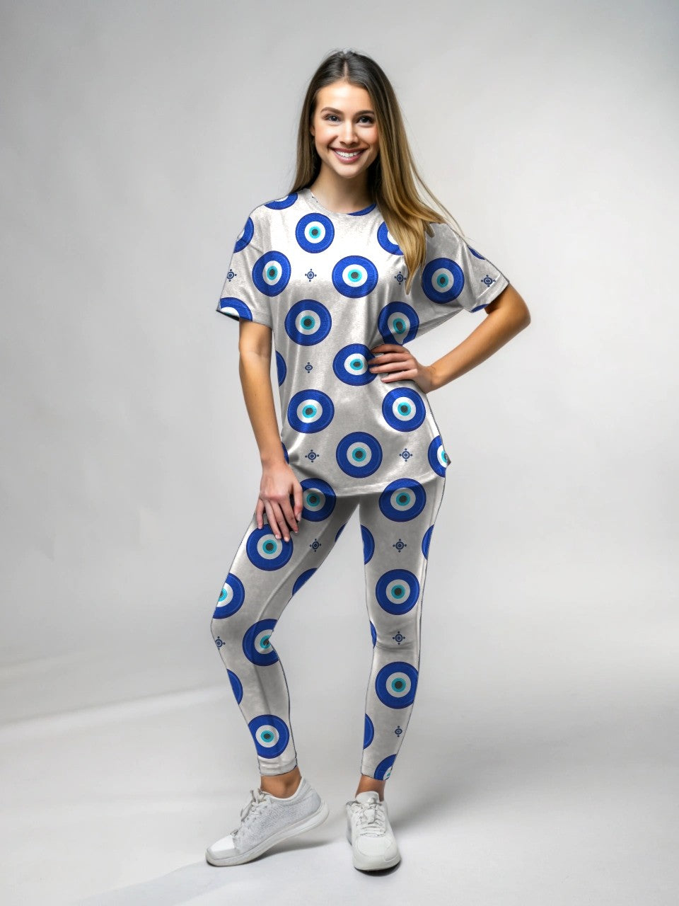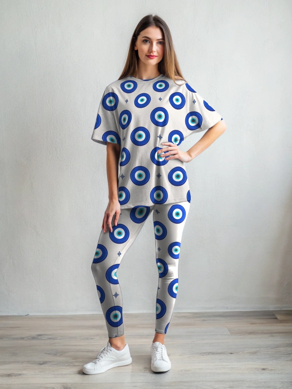 Quirky Evil Eye Print Premium Oversized Tee With Tummy Tuck Body Shaping Leggings Co-ord Set