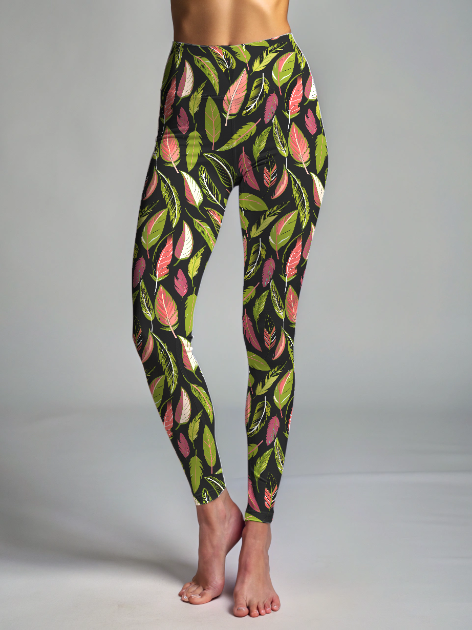 Serene Feather Print Premium Oversized Tee With Tummy Tuck Body Shaping Leggings Co-ord Set