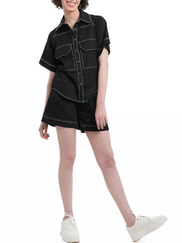 Smart Black Stich Detail Shorts Co Ord Set