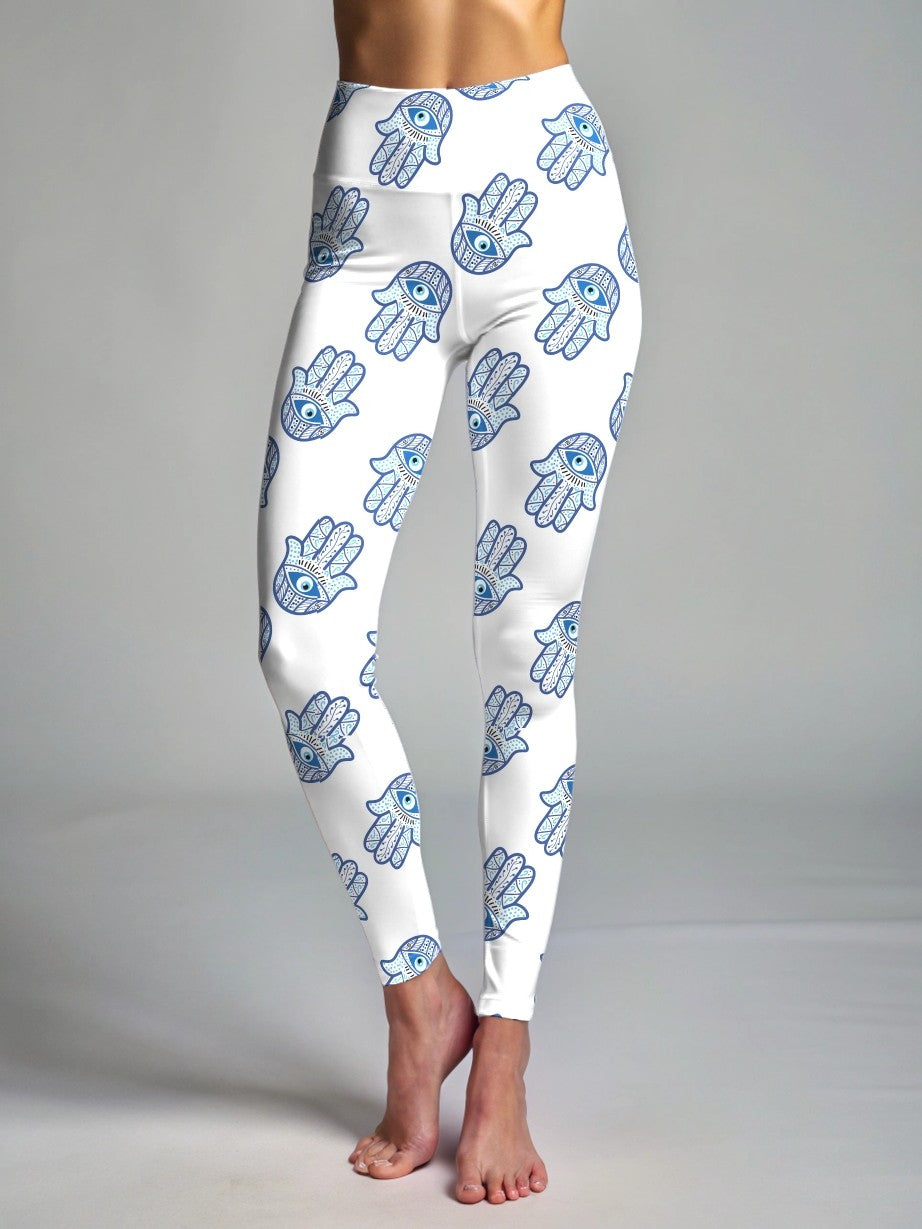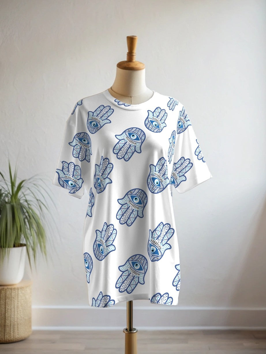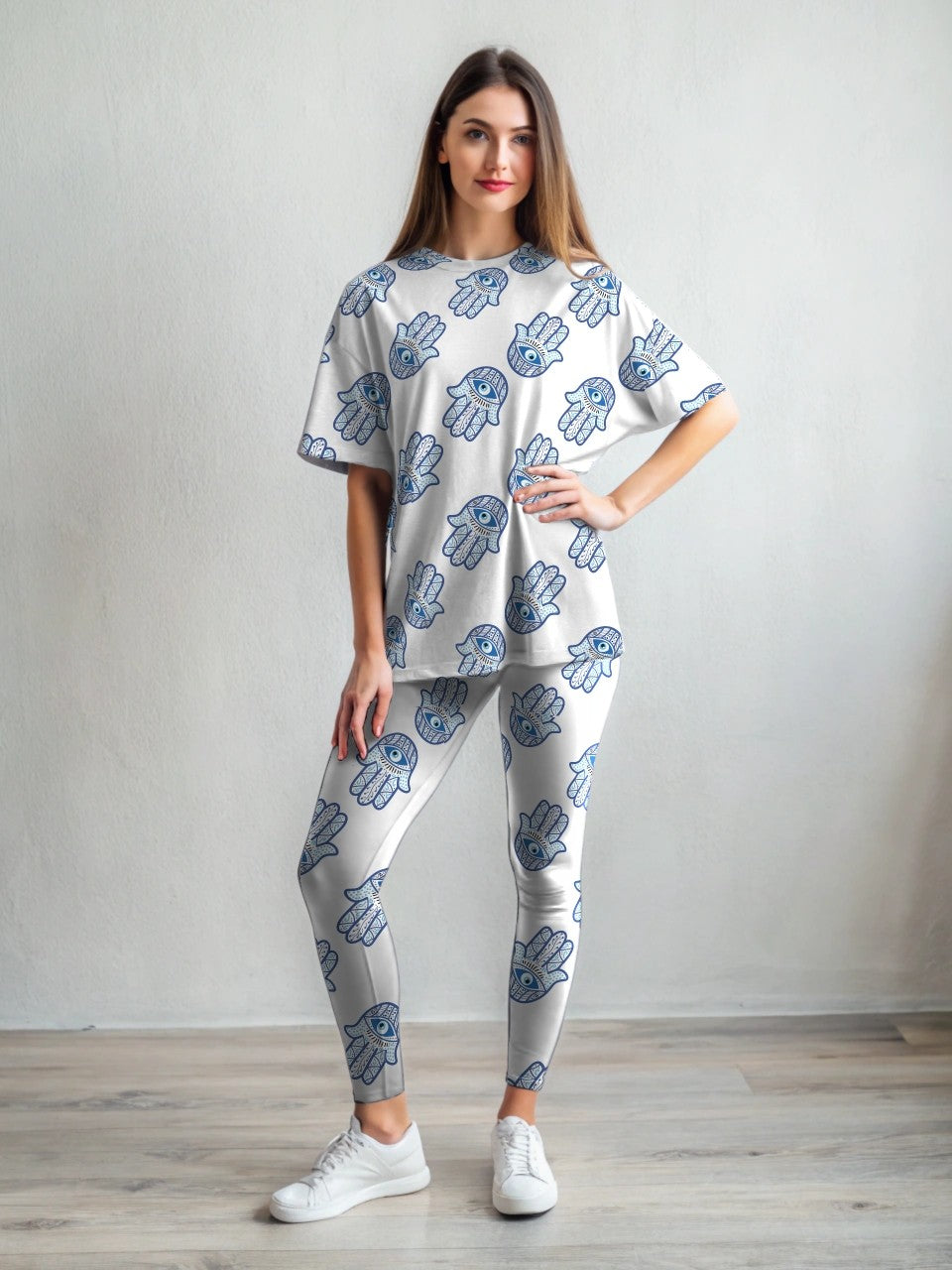 Smart Evil Eye Hand Print Premium Oversized Tee With Tummy Tuck Body Shaping Leggings Co-ord Set