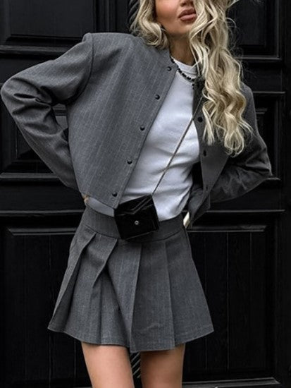 Sharp Look Contrast Zipper Top With High Waist Pencil Skirt Set - Ships in 24 Hrs