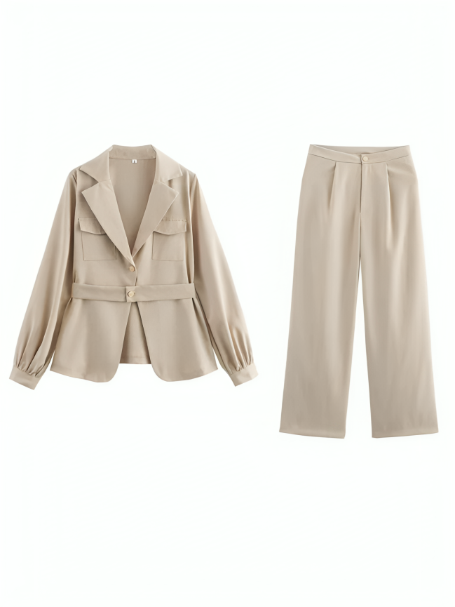 Smart Wear Puff Sleeve Blazer With Pants And Belt Suit Set