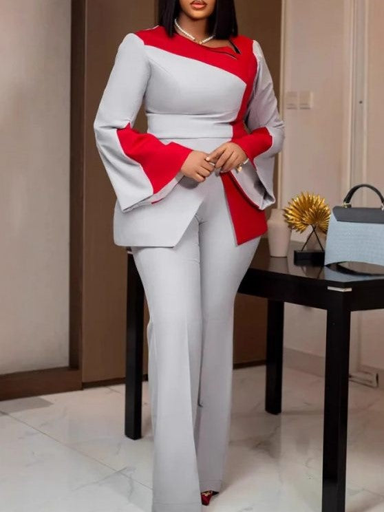 Sophisticated Irregular Color Matching Pants Grey Co Ord Set