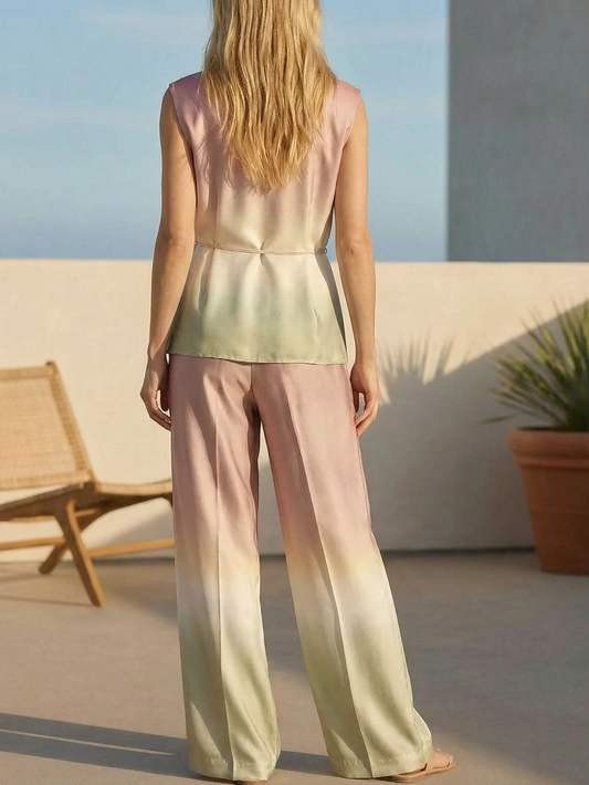 Elegant Sleeveles Ombre Wrap Top With Pants Co ord Set