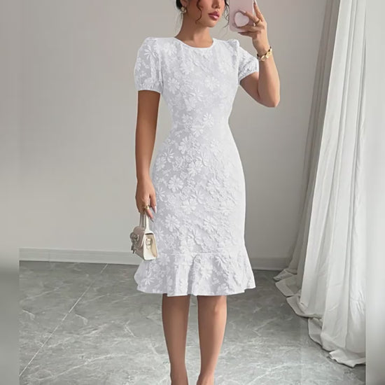 Vintage Flower Embroidery Long Sleeve White Party Dress - Ships in 24 Hrs