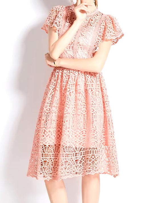 Fabulous O Neck A Line Lace Pink Slim Dress - Ships in 24 Hrs