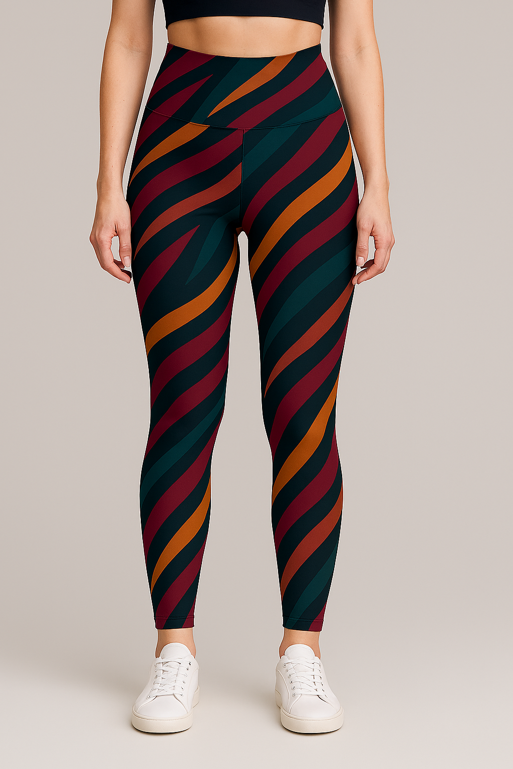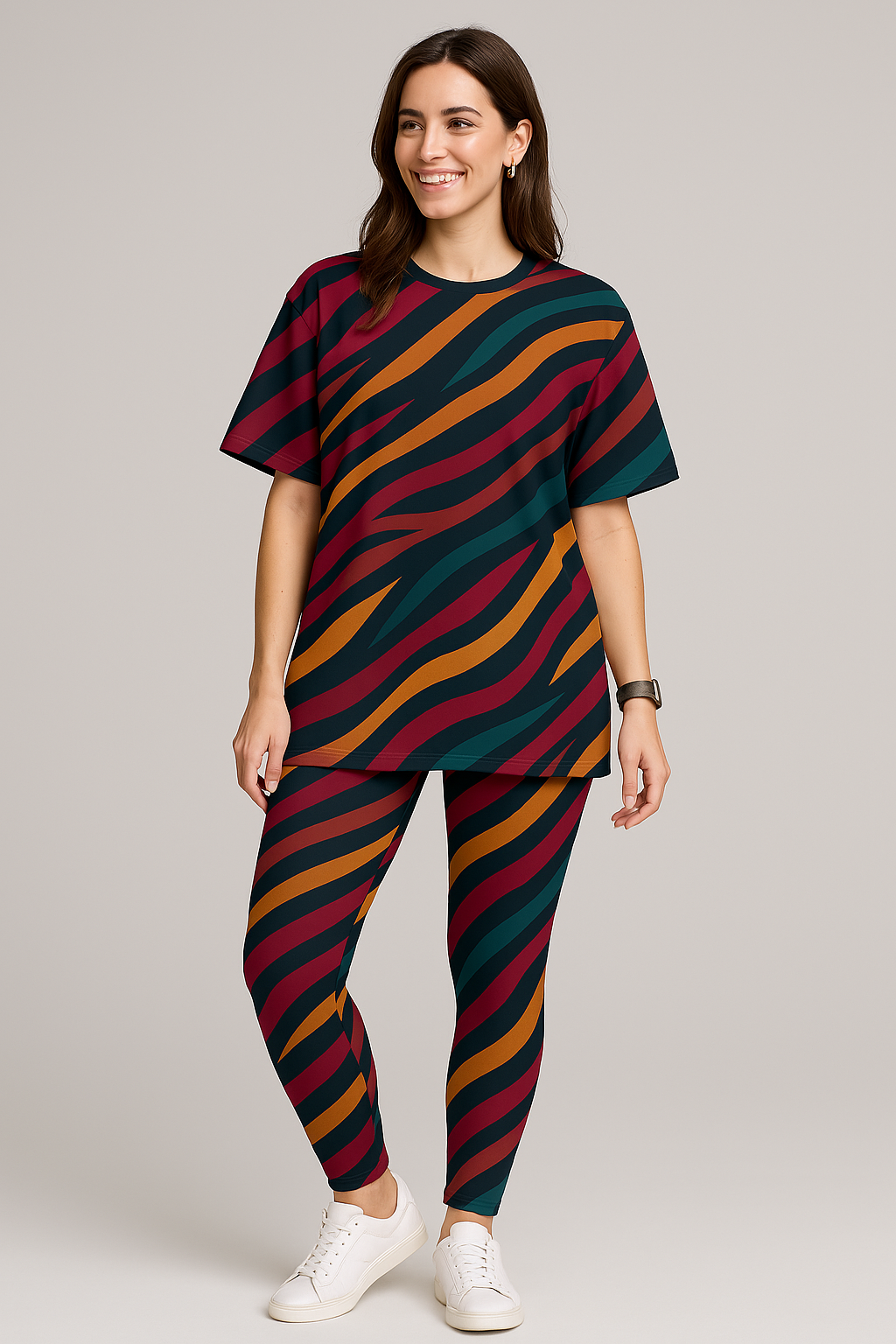 Trendy Waves Print Premium Oversized Tee With Tummy Tuck Body Shaping Leggings Co-ord Set
