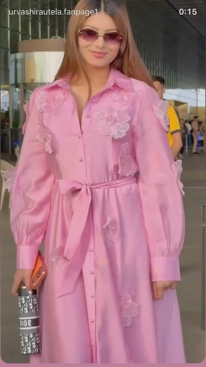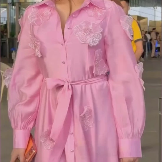 Vintage Flower Embroidery Long Sleeve Pink Party Dress