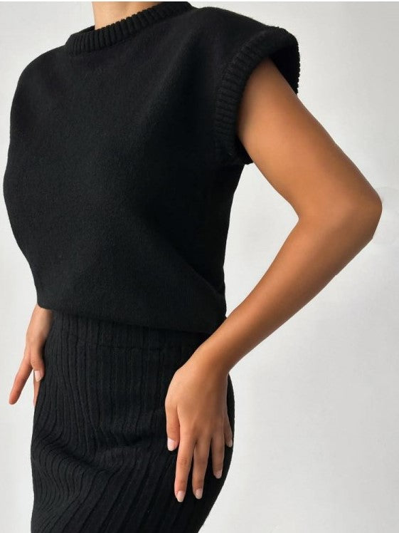 Winter Must Have! Solid High Rise Sweater Black Skirt Set