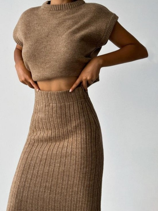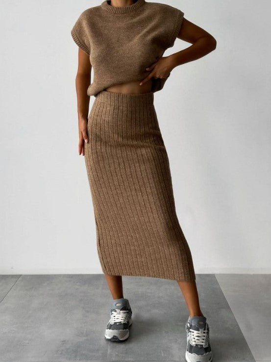 Winter Must Have! Solid High Rise Sweater Brown Skirt Set - Ships in 24 Hrs